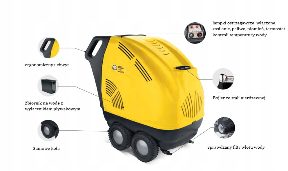 Nowy myjka ciśnieniowa Annovi Reverberi - model Kydra 2315N z funkcją podgrzewania wody. Urządzenie o wysokiej wydajności, idealne do zastosowań profesjonalnych i domowych. ORYGINALNY PRODUKT WŁOSKIEJ MARKI ANNOVI REVERBERI HOT 2315N - Najmocniejsza ciepłowodna myjka na trzyfazowa z mosiężną pompą !