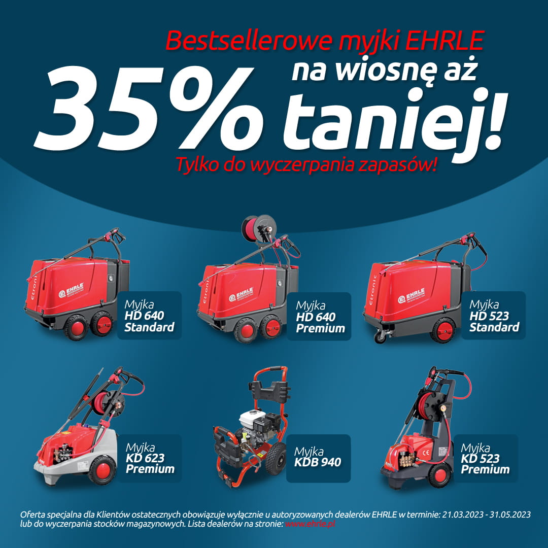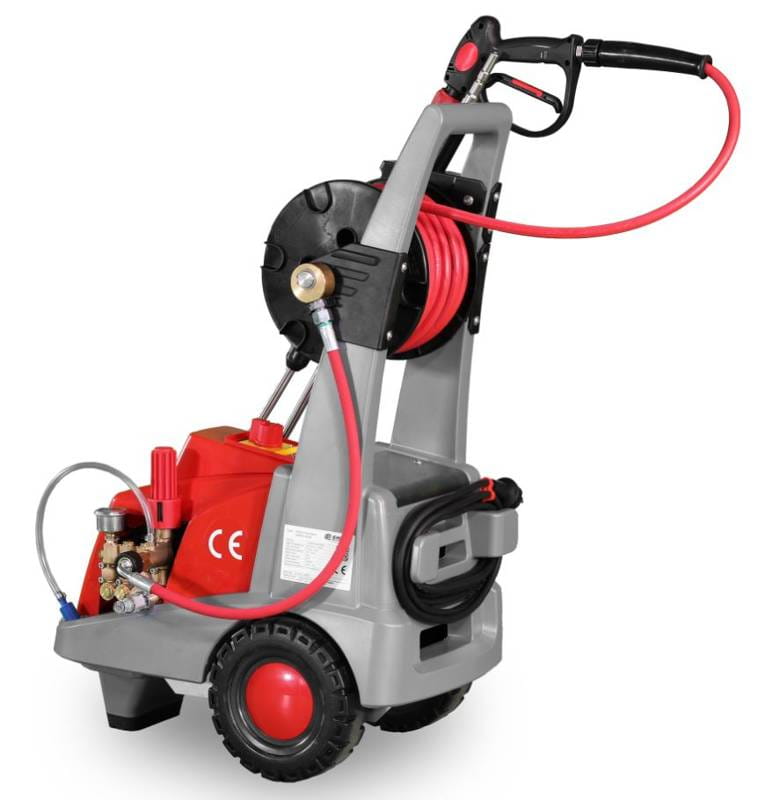 EHRLE KD 523 2x2 jest myjką wysokociśnieniową. Ma mocną pompę korbowodową połączoną z silnikiem 2800 RPM chłodzonym wyłącznie powietrzem.